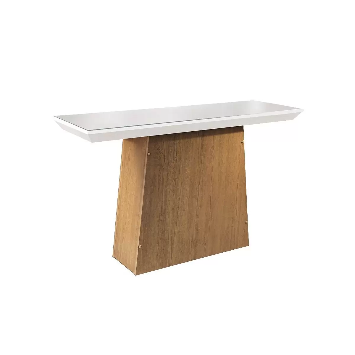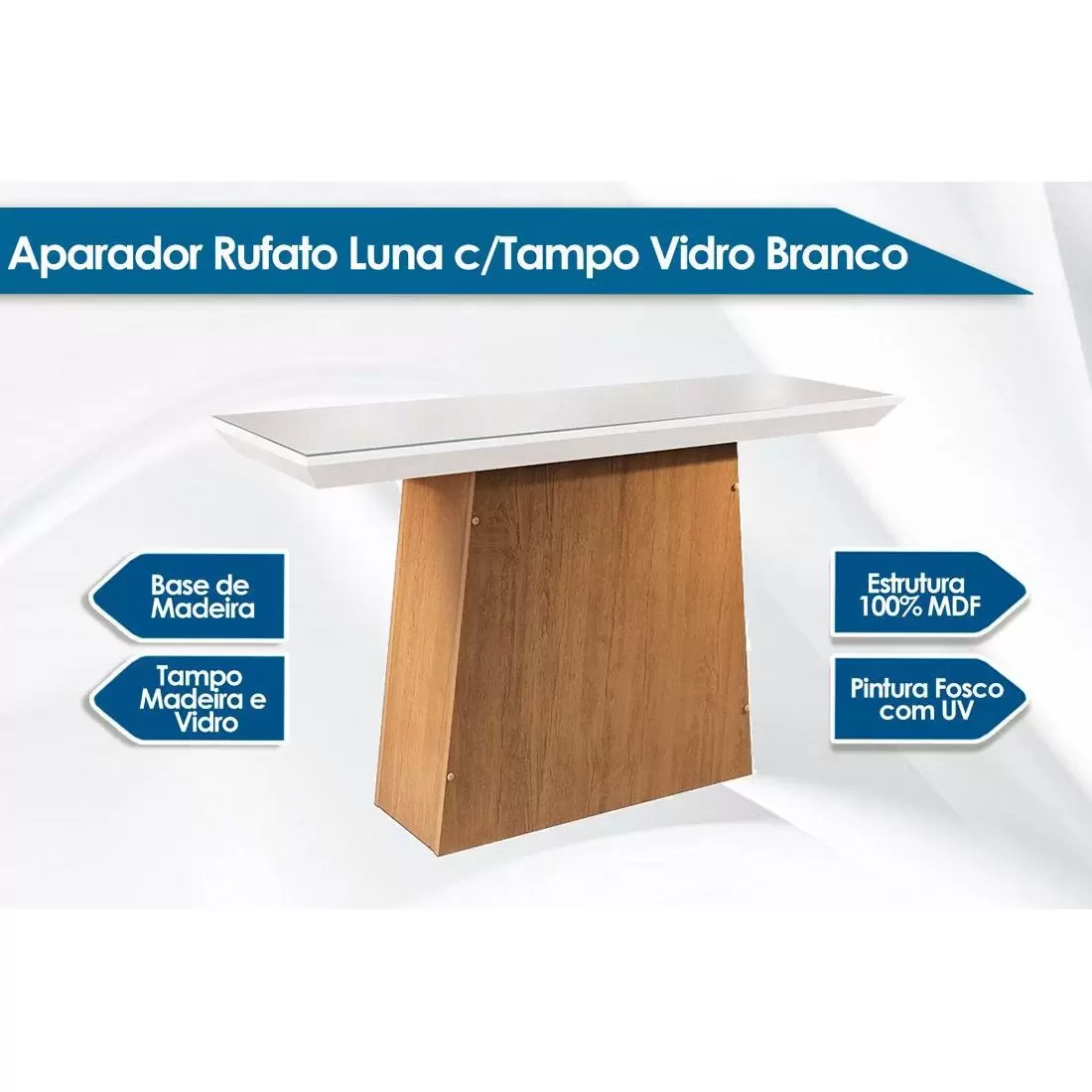 APARADOR LUNA COM TAMPO DE VIDRO – RUFATO – OFF WHITE/IMBUIA