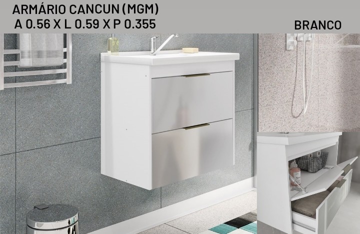 ARMÁRIO CANCUN PARA BANHEIRO COM CUBA 1 PORTA 1 GAVETA – MGM MÓVEIS – BRANCO