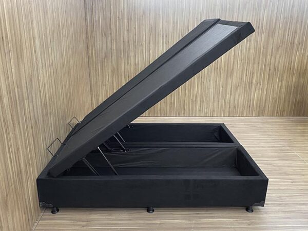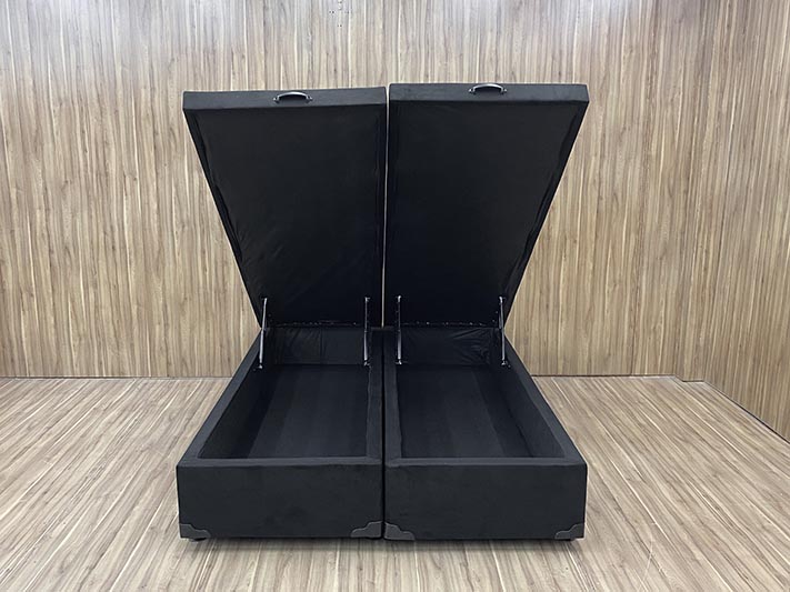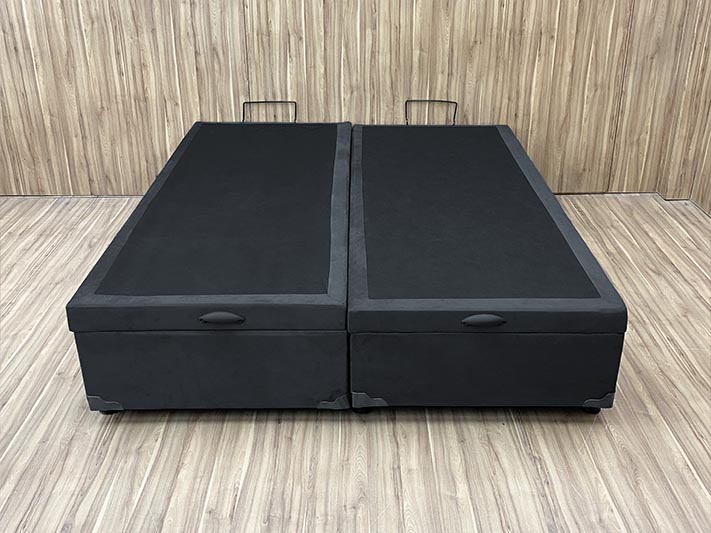 Base Box Baú Bipartido Queen Blindado Suede Preto 36X158X198 AN