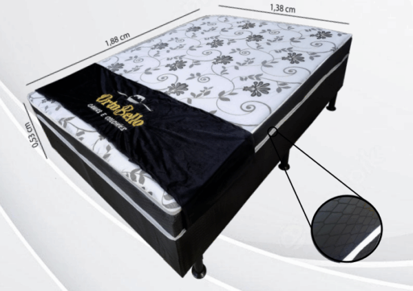 Medidas: 1,38 de largura, 1,88 de comprimento e 52 cm de altura.