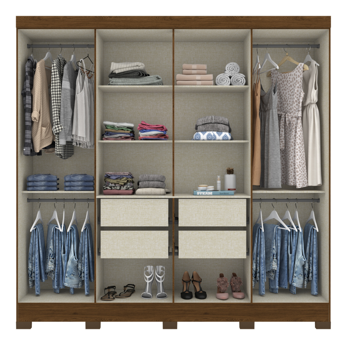 Roupeiro Briz 8 Portas 4 Gavetas Castanho HP B51-130 – Henn