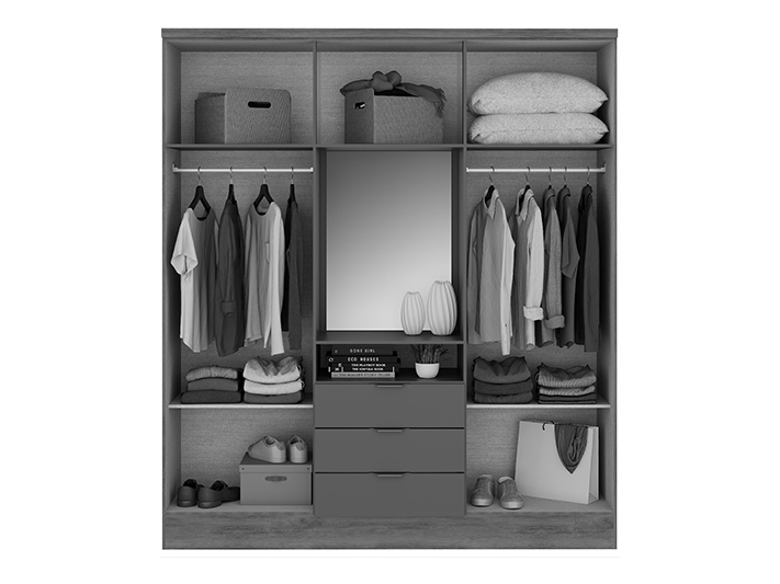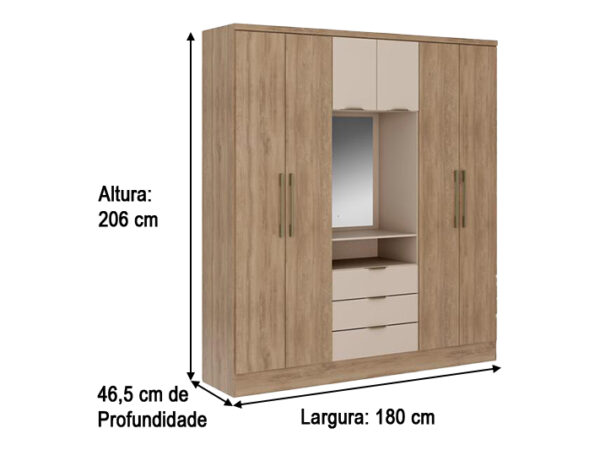 O Guarda-Roupa 6 Portas Modelo Aspen possui um amplo espaço e um design inteligente para acomodar suas roupas e diversos objetos. Ainda mais, esse modelo que vem acompanhado de um espelho central. Além disso, esse modelo possui espaço externo para acomodar diversos objetos pessoais.