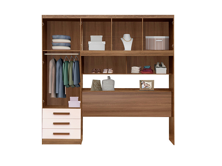 O Roupeiro Casal Modelo Mexico possui um design inteligente para acomodar seu colchão de solteiro. Além disso, possui amplo espaço interno, perfeito para acomodar suas roupas e pertences. Bem como, vai deixar o ambiente do seu quarto com um visual sofisticado e elegante.