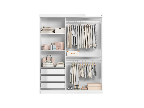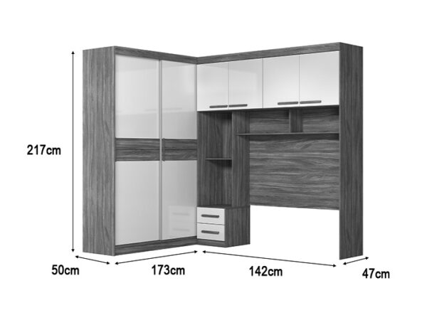 - 2 Portas deslizantes sobre trilhos em alumínio;
