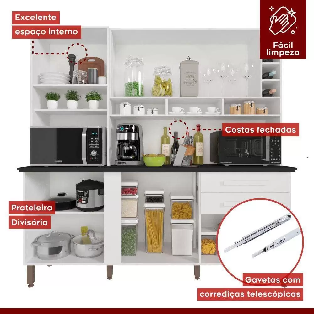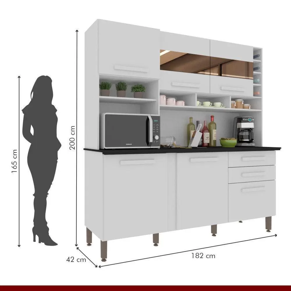 KIT COZINHA ALEXIA 6 PORTAS 2 GAVETAS COM ESPELHO – IMOP