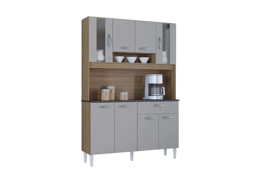 KIT COZINHA CORAL 8 PORTAS 1 GAVETA – POQUEMA – CASTANHO/OFF WHITE