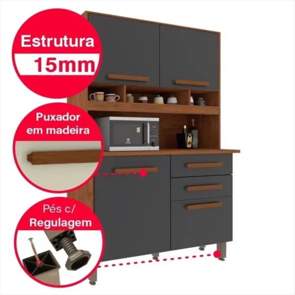 KIT COZINHA SOFIA 1.15Cm 4 PORTAS 2 GAVETAS – IMOP