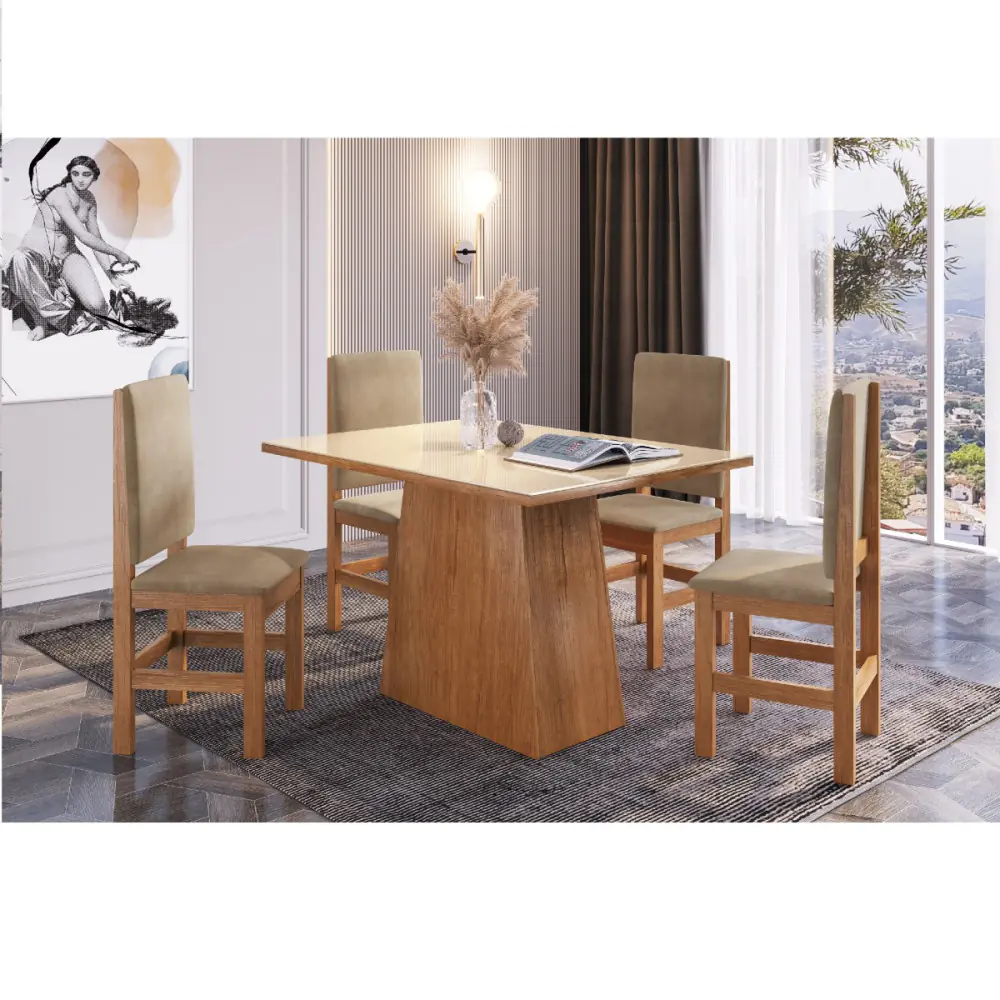 MESA ZAMARCHI 1.20 COM 4 CADEIRAS – ZAMARCHI – CANELA