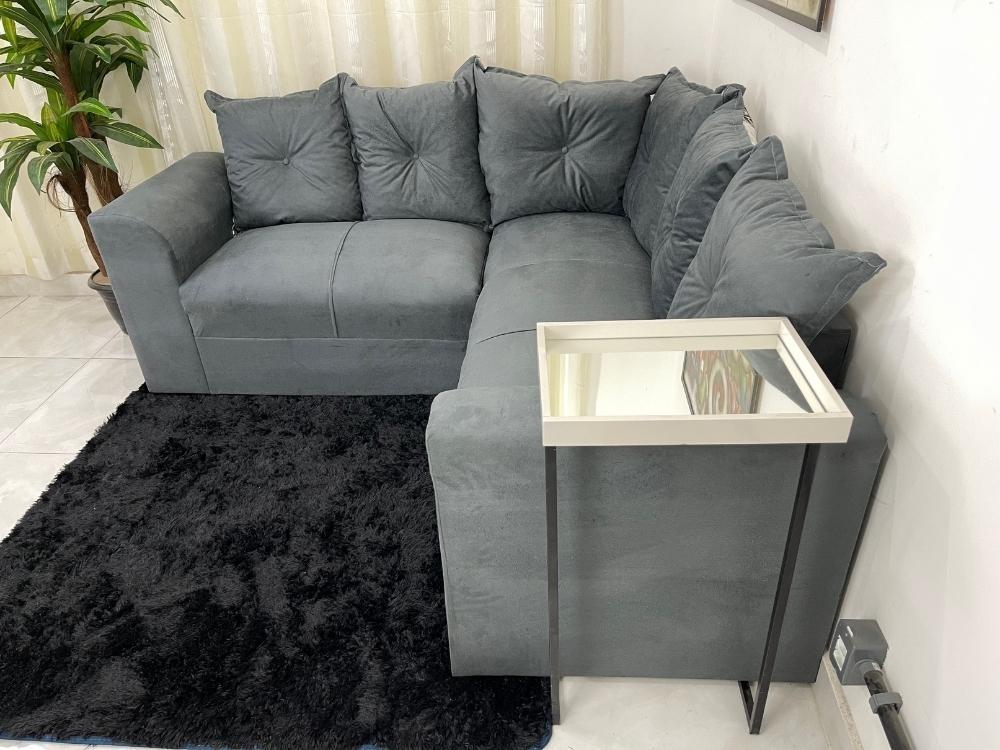 Sofá de Canto ideal para aquele ambiente pequeno. Proporciona delicadeza e otimização do espaço, aproveite as diversas cores.