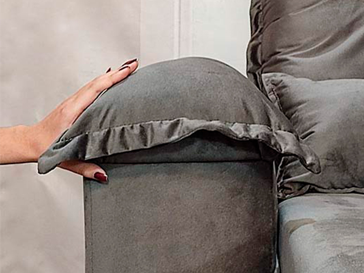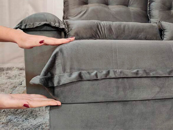 O revestimento é em tecido veludinho, deixando a superfície do sofá muito mais macia.