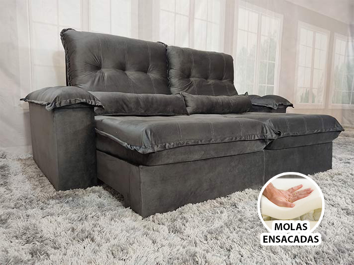 Nosso Sofá Retrátil Reclinável Campo Grande Cinza é um produto moderno, com design elegante que combina com qualquer ambiente e deixa sua sala ainda mais linda e aconchegante.