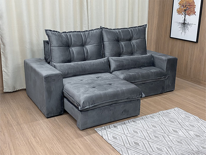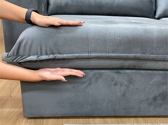 O revestimento é em tecido veludão Premium, deixando a superfície do sofá muito mais macia.