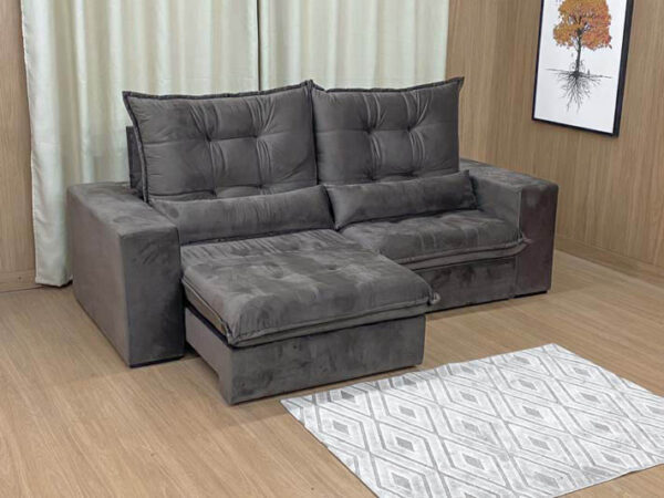 O revestimento é em tecido veludão Premium, deixando a superfície do sofá muito mais macia.