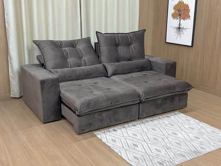O assento é retrátil com espuma AG 40 Firme Hipersoft envolvida com manta siliconada, molas bonnel que proporcionam uma acomodação extremamente confortável.