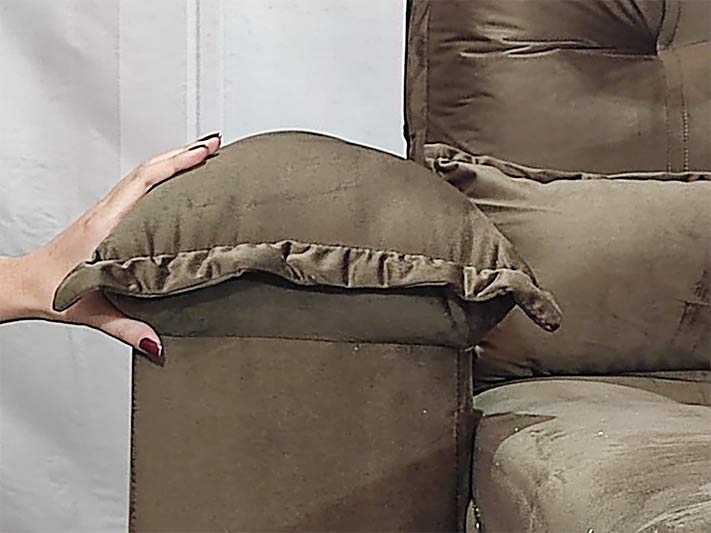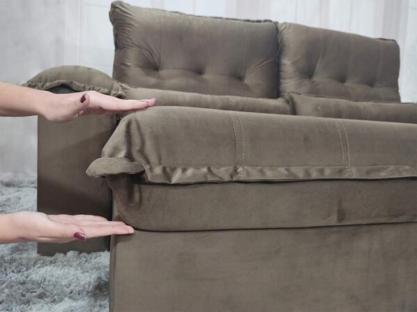 O revestimento é em tecido veludinho, deixando a superfície do sofá muito mais macia.