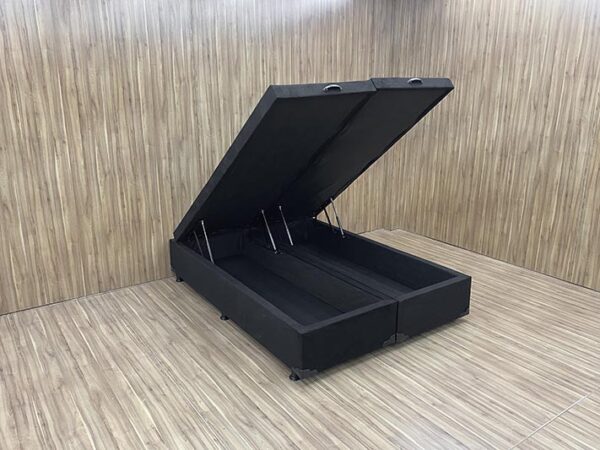 Base Box Baú Bipartido Queen Blindado Suede Preto 36X158X198 AN
