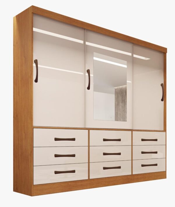 GUARDA-ROUPA ATHENAS – 3 PORTAS DE CORRER 9 GAVETAS C/ ESPELHO – BIANCHI – NATURE/OFF WHITE