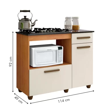 BALCÃO TURIM PARA COOKTOP 4 BOCAS 2 NICHOS PARA FORNO – KAIKI MÓVEIS – NATURE/OFF WHITE